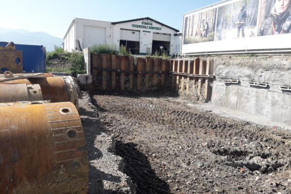 Zapaženie stavebnej jamy Ružomberok Objednávateľ: BELIDEA, s.r.o. Technológia: kotvy, torkrét Termín výstavby: 07/2023 – 10/2023